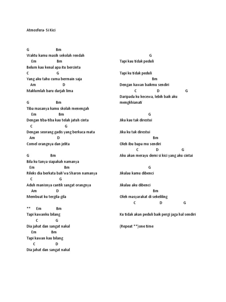 Bagikan lirik dan kunci gitar ini melalui. Buat teman2 yang mau request lagu yg mungkin chord2nya susah dan ingin agar dibuatkan chord versi mudahnya, silahkan teman2 tulis di kolom . Download aplikasi kunci gitar terbaru gratis dan lengkap! Chordify is your #1 platform for chords. G bm waktu kamu masih sekolah rendah.